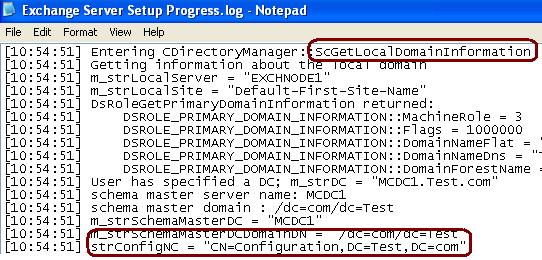 Before it proceeds to check anything, it calls its first procedure called ScAutoDetectDirectoryLocations. The purpose of this function is to identify the Active Directory location. This function must be executed to get the list of domains and their controllers. If it cannot find any domain the setup will fail. This information is required by the Exchange Setup to update the schema and query the domains for some setup-specific information.