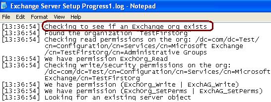 If setup detects that an Exchange Organization already exists in Active Directory, it verifies the permissions on the Organization and Administrative Group by querying the following CNs: