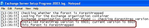 Exchange 2003 will show the following entry at the Exchange Server Setup Progress.log file.