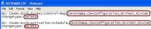 You can use existing LDF files to delete Exchange classes/attributes from the forest. In order to do that, you need to edit all the LDF files one by one and then change the CN and ChangeType to Delete. As an example, the SCHEMA0.LDF file contains the following entry in it as shown below: