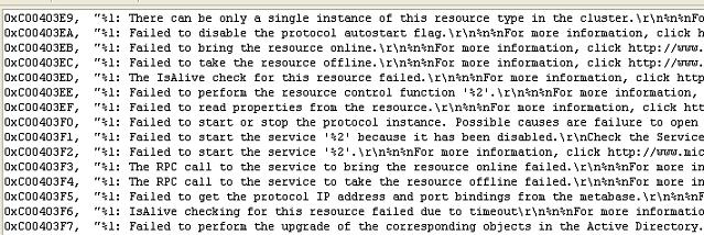 There are more than 200 entries in the CLUSMSG.DLL and all the entries are related to the Exchange Server Cluster resources.