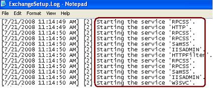 Earlier Exchange versions used to create the following files for the Exchange Setup process in x:\Program Files\Microsoft Integration\Microsoft Exchange\Logs
