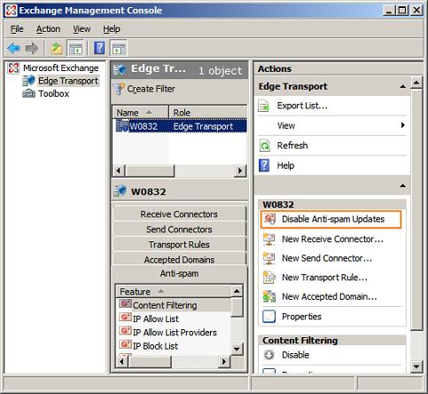 Just like in Exchange 2003, filter updates continue to be distributed through the Microsoft Update service (not Windows Update).