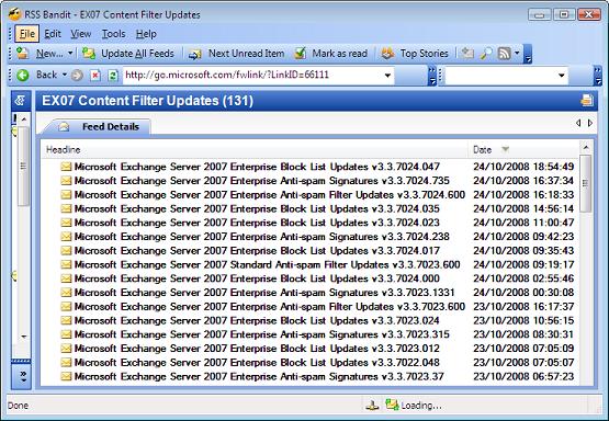 It is now time to return to the update versions that Get-AntispamUpdates supplies us. This is what we need when checking if the latest updates are in place. MS is conveniently providing an RSS feed listing all the released updates and their version. Here are the links, just subscribe the relevant feed at your RSS reader: