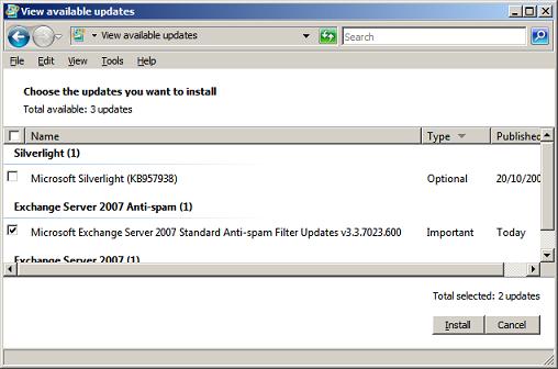 To satisfy the need to quickly pick updates Exchange 2007 includes the Microsoft Exchange anti-spam update service. This acts as a client to Microsoft Update, polling exclusively anti-spam updates once every hour.