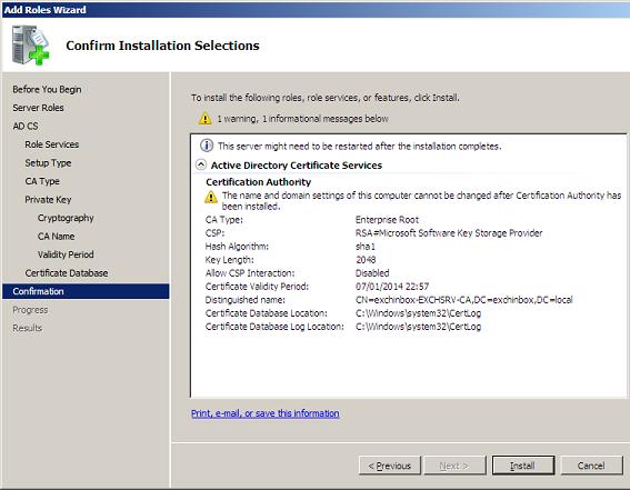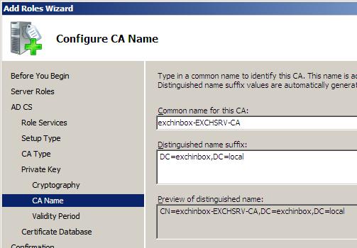 For practical reasons, on my test network I installed Certificate Services and Exchange 2007 SP1 all on one Windows 2008 machine.