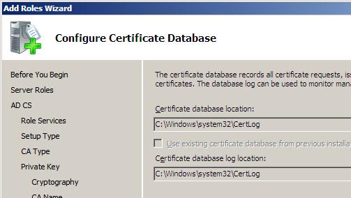 Finally we have the steps for setting the validity period and the databases path for this CA.