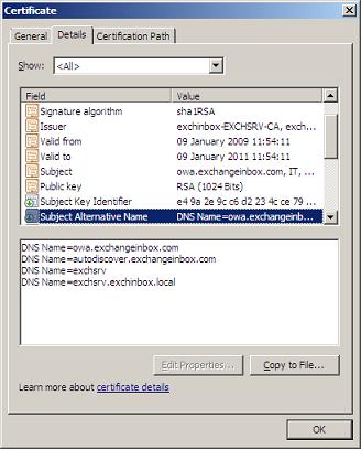 In Replacing the Exchange 2007 Self-Signed Certificate (Part 1) we looked at the choice between public and private Certification Authorities CAs. For the latter, we walked through the installation of Certificates Services on Windows 2008. We also discussed the Certificate Subject, Subject Alternative Names SAN and wildcards. In this discussion we identified the need for a Certificate covering the names: