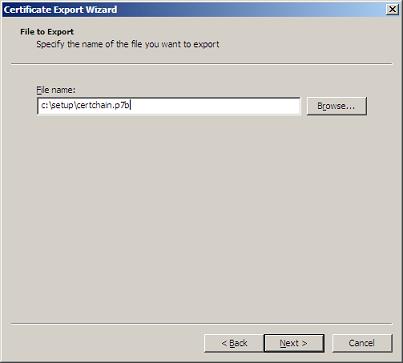 We should now have our p7b file ready for importing into Exchange 2007 as discussed in the previous section.