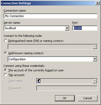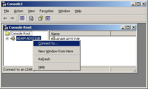Now right-click the ADAM ADSI Edit node and select 'Connect To...'