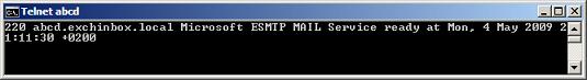 We now test name resolution and port 25 connectivity. This telnet command will verify both: