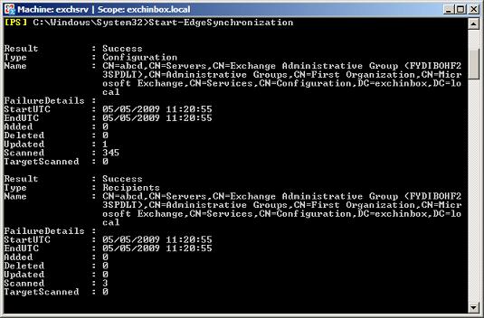 This change won't be visible to the Edge server until the next synchronization cycle unless we force it to. From the Exchange Management Shell we first run: