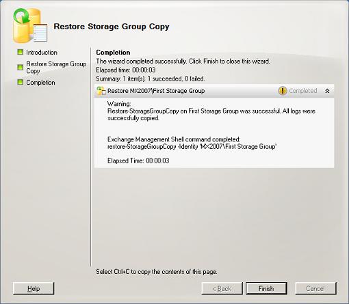 Restore Storage Group Copy