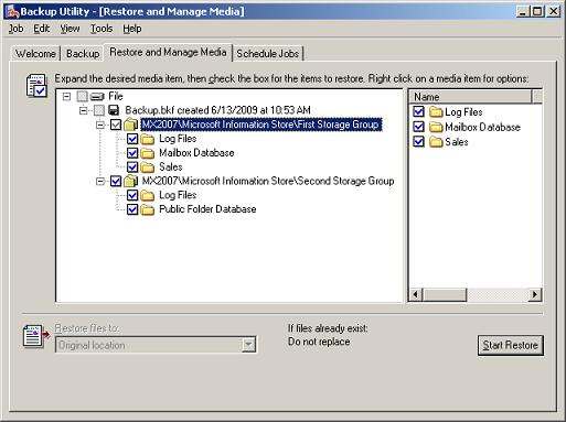 Restoring Exchange using the Windows Backup Utility