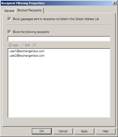 Opening the Recipient Filtering properties we find the same configuration elements we had in Exchange 2003.