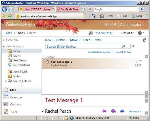 The user interface feels "fresher" and less cluttered. It also appears nicely whatever resolution I set my display to. The figure below shows the new Outlook Web App main page.
