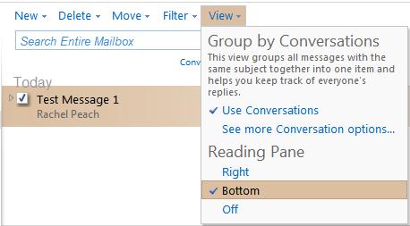 Another welcome addition is the ability to change the position of the reading pane. From the View menu, you can now move the reading pane so that it is placed at the bottom or the right hand side of the screen.