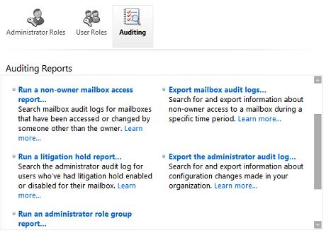 The Mailbox Audit Logging feature allows you to keep a log of mailbox access and the actions taken on that mailbox. As shown in the figure below, from the Exchange Control Panel, you can generate a report of who accessed what and when, as well as what they did on the mailbox.