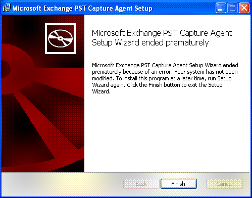 Not supported does not necessarily mean "does not work". In the forums I found someone claiming that he was running PST Capture on Windows XP SP3 just fine. So I tried to install the PST Capture Agent on XP myself. The installation failed immediately without giving me any useful information.