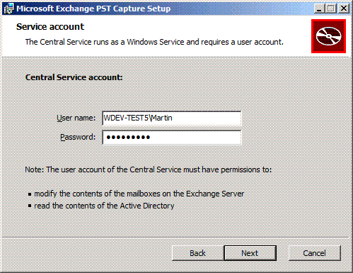Before starting the installation it is good to check the permissions PST Capture requires. I will not reproduce this information here. Just check the list under Permissions Considerations for PST Capture.