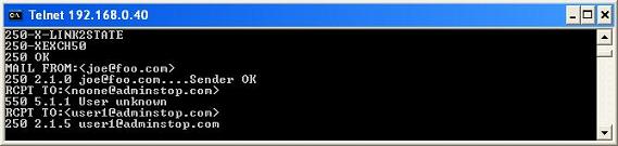 Telnet allows us to directly interact with the Exchange SMTP service. Establishing an inbound connection and manually submitting the individual SMTP commands allows us to see for ourselves how Exchange handles emails. In