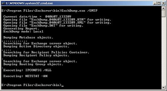 /SMTP Dumps configuration information specific to Exchange SMTP. Also includes Recipient Policy and Routing Group information.