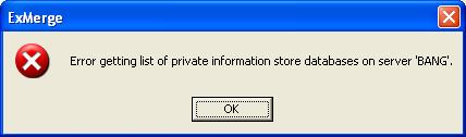 Unless we do this, ExMerge would fail on enumerating the private information stores and would return an error saying: "Error getting list of private information store databases on server..."