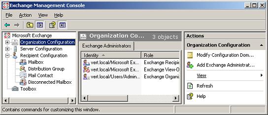 1. Open the Exchange 2007 Management Console and select 'Organization Configuration'