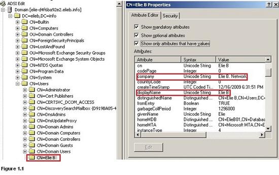 Attributes name can be found through ADSIEDIT. To do this, open adsiedit and select the user properties. From the attribute editor tab, scroll the list to get the attribute name you are looking for. This would look like figure 1.1