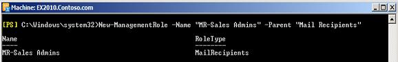 New-ManagementRole -Name "MR-Sales Admins" -Parent "Mail Recipients"