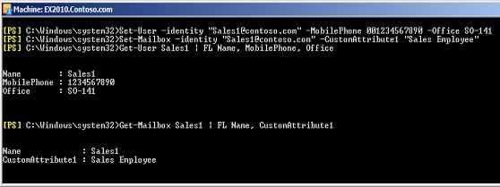 Set-User -Identity "sales1@contoso.com" -MobilePhone 001234567890 -Office SO-141