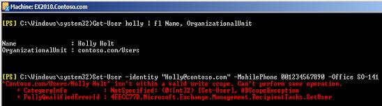 If you try to run the command on a user that is not in the Sales OU, i.e. not within our management scope, the command fails with the following error message: