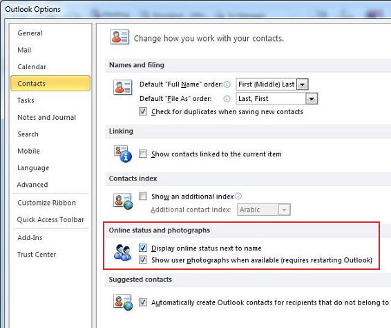 • Whether we want to save Lync contacts in Exchange personal contacts folder