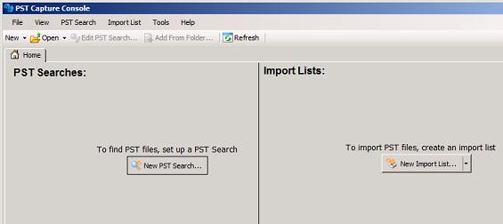 Once the Central Service component is installed we can open the configuration console and start exploring what's available. The interface is quite simple. Here we find all we need to manage the tasks this application is designed to handle, seeking PSTs, transferring them to the Central Service and importing to Exchange.