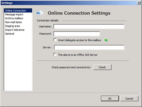 Online Connection - If running Exchange on the Cloud enter the credentials and server to connect to.