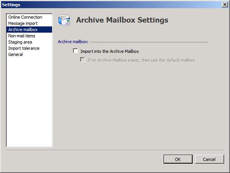 Archive mailbox - If using the Exchange 2010 Archive Mailbox functionality, then this will normally be the best destination for these imports.