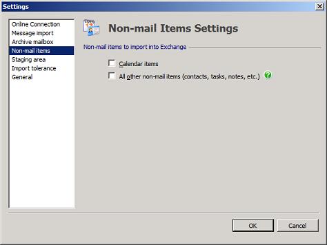 Non-mail items - By default only emails are imported but we can choose to import other items as well.