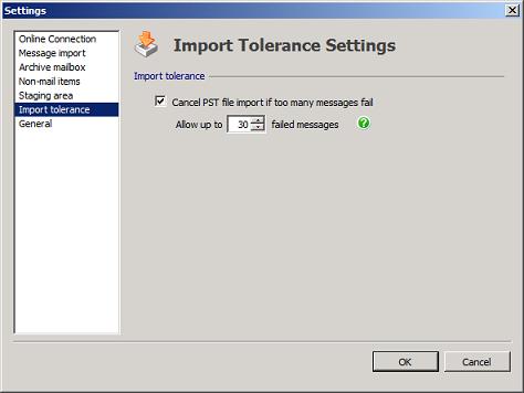 Import tolerance - Here we specify the number of errors the import process should allow before aborting the operation.