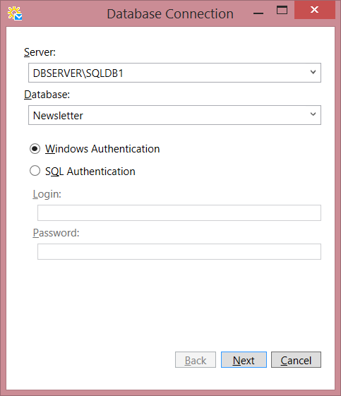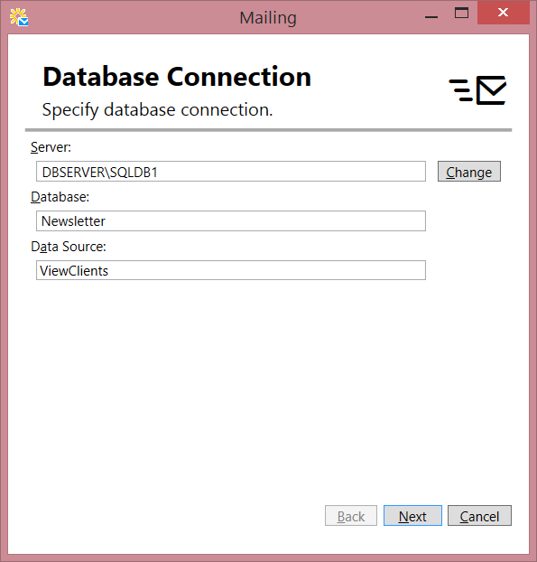 To work with tags we need an MS SQL database. From here the actual tag data is retrieved. At the very least the database must supply us with a list of recipients.