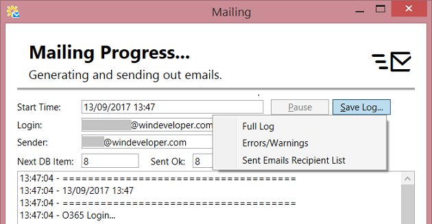 Clicking Go kicks-off the mailing process. We are prompted to login to Office 365, following that the mailer goes through the database generating an email for each data row.