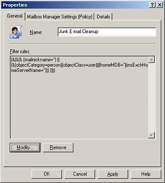 4. The property sheet for the new policy opens. On the General page, enter the policy display name 'Junk E-mail Cleanup'