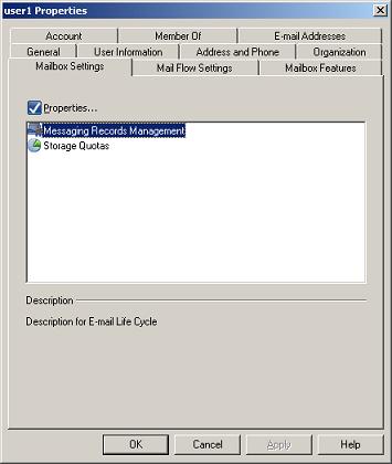 From the Mailbox Settings page open the Messaging Records Management properties.